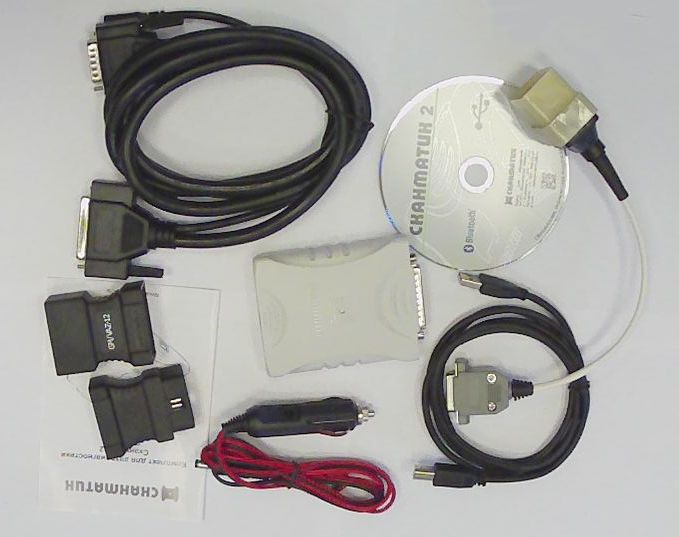 Диагностический сканер Сканматик 2 состоит из главного блока, двух шнуров, соединяющих главный блок с компьютером и автомобилем. Отметим, что при использовании блютус, компьютерный шнур не нужен. В комплект обязательно входит переходник ОБД-2. В расширенной комплектации имеется еще переходники GM \ старые ВАЗы\ и Газ и Газель выпуска до 08 года \ разъем под капотом\. В комплекте имеется также шнур питания и диск с описанием, драйверами и рабочим окном.
