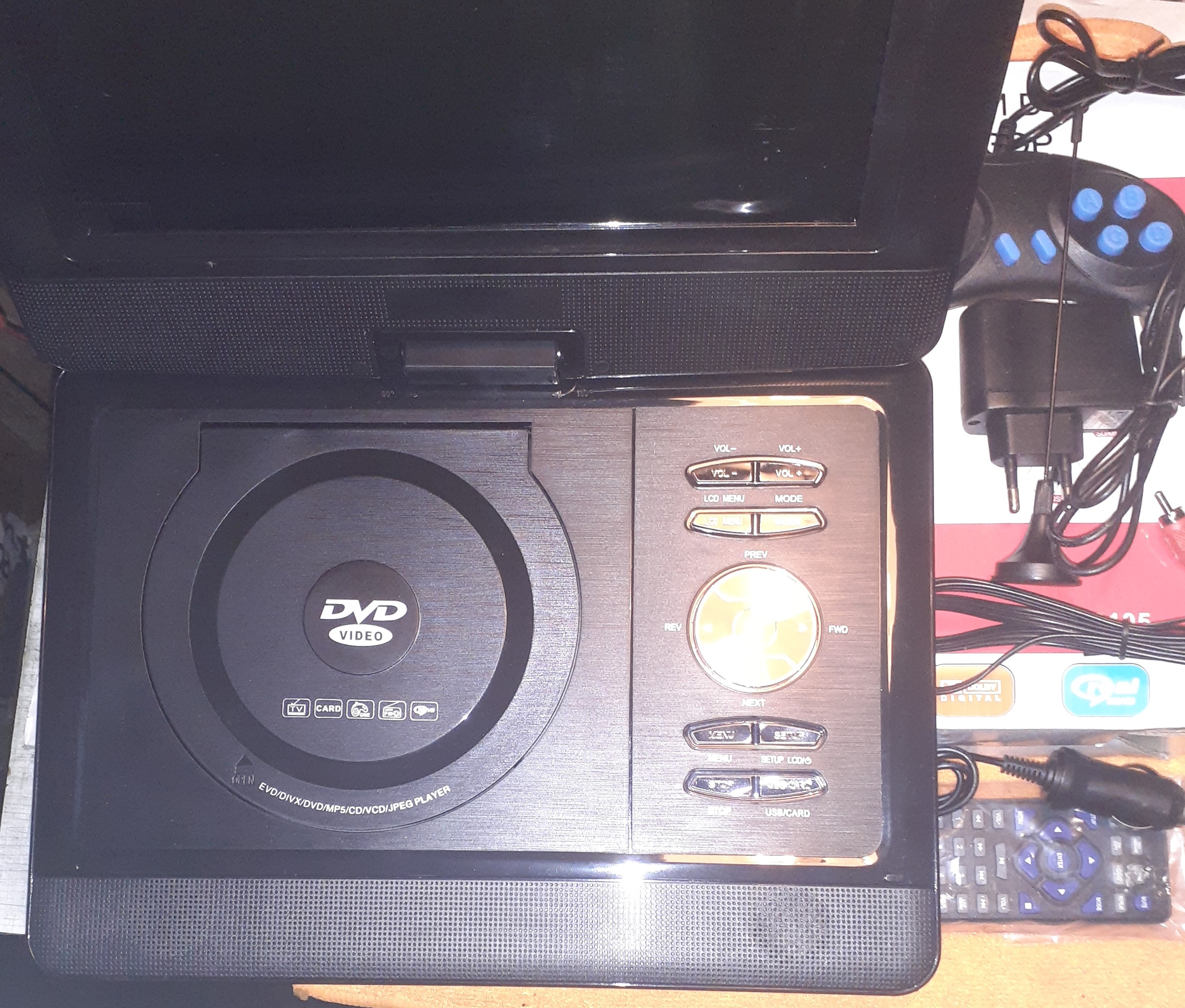 Малогабаритный DVD-плеер с цифровым телевизором DVD-LS105 - может воспроизводить не только DVD и CD диски, но и имеет возможность для чтения карт памяти SD и USB флешек. Устройство имеет диагональ 11 дюймов. При желании можно просмотреть любимую телепередачу при помощи встроенного ТВ-тюнера с цифровым преобразователем. Преобразователь для приема цифровых телепередач дается бесплатно. Прием цифровых телепередач осуществим в стандарте DVB-T2. Устройство имеет аккумулятор, это обеспечивает использование DVD-плеера DVD-LS105 и телевизора, не только стационарно, но и в автомобиле и вообще автономно (на пикнике). Имеется поддержка анаглифного 3D видео. Присутствует игровой джойстик, что делает данный прибор интересным малолетним членам семьи. Как бонус, идет диск с Dendy-играми в большом количестве. Устройство обеспечивает воспроизведение любых существующих видеоформатов. И видеоплеер и цифровой преобразователь новые.